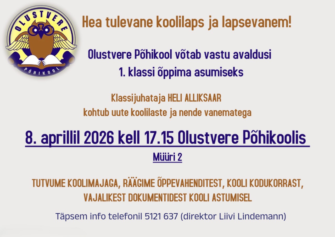 NB! Uus tunniplaan alates IV veerandist Loomise kuupäev 20.02.2026 Autor Liis Laansoo Vastlapäev Loomise kuupäev 12.02.2026 Autor Liis Laansoo Vabariigi aastapäev ja ajaloopäev Loomise kuupäev 09.02.2026 Autor Liis Laansoo Võõrkeeltepäev Loomise kuupäev 23.01.2026 Autor Marjel Einulo Vaata rohkem